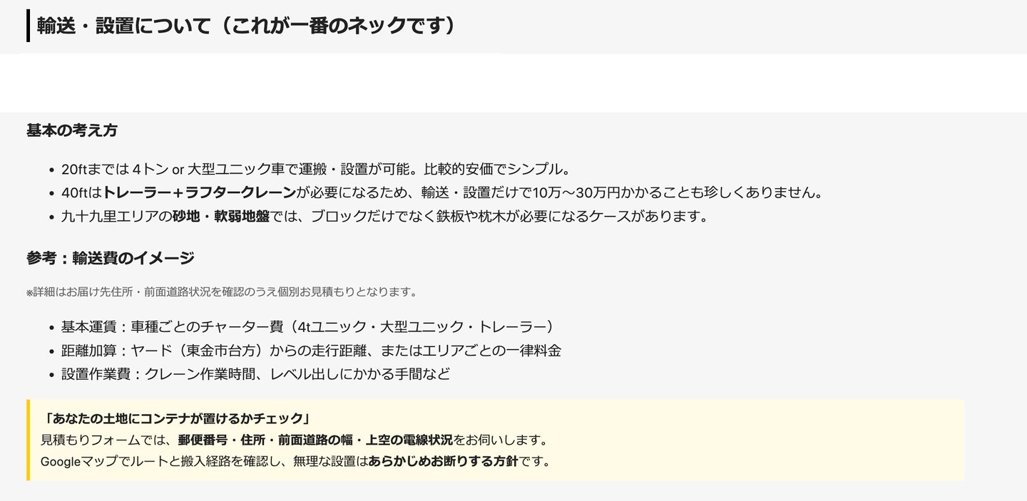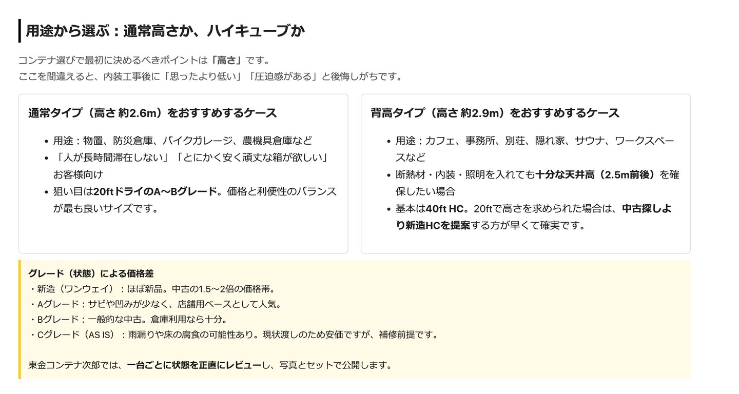 東金コンテナ次郎は、単なる「カタログサイト」ではなく、コンテナを買う前に知るべきことを全部書くサイトを目指しています。